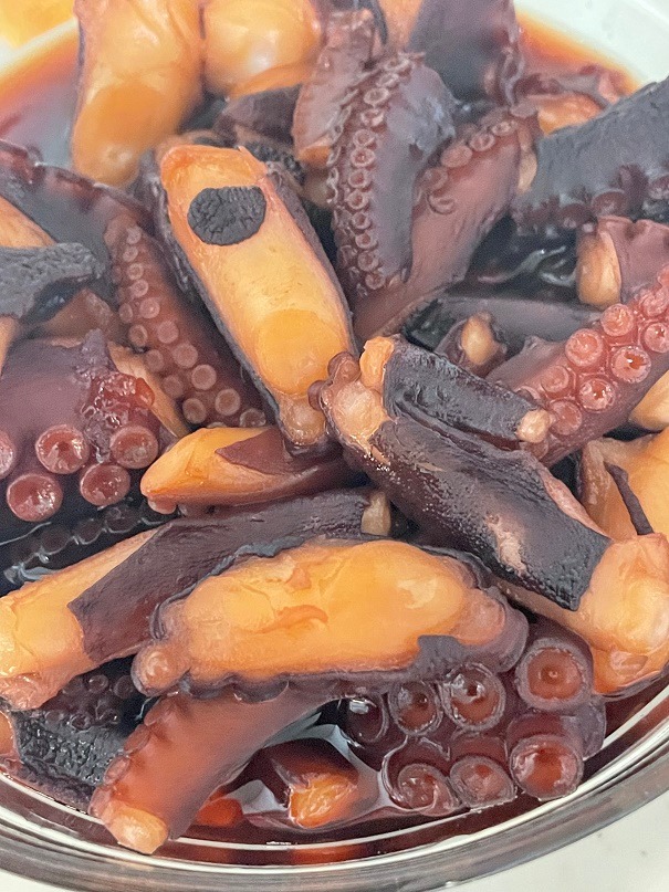 普通サイズのタコを何匹か煮付けてね。爪楊枝で刺して食べて。